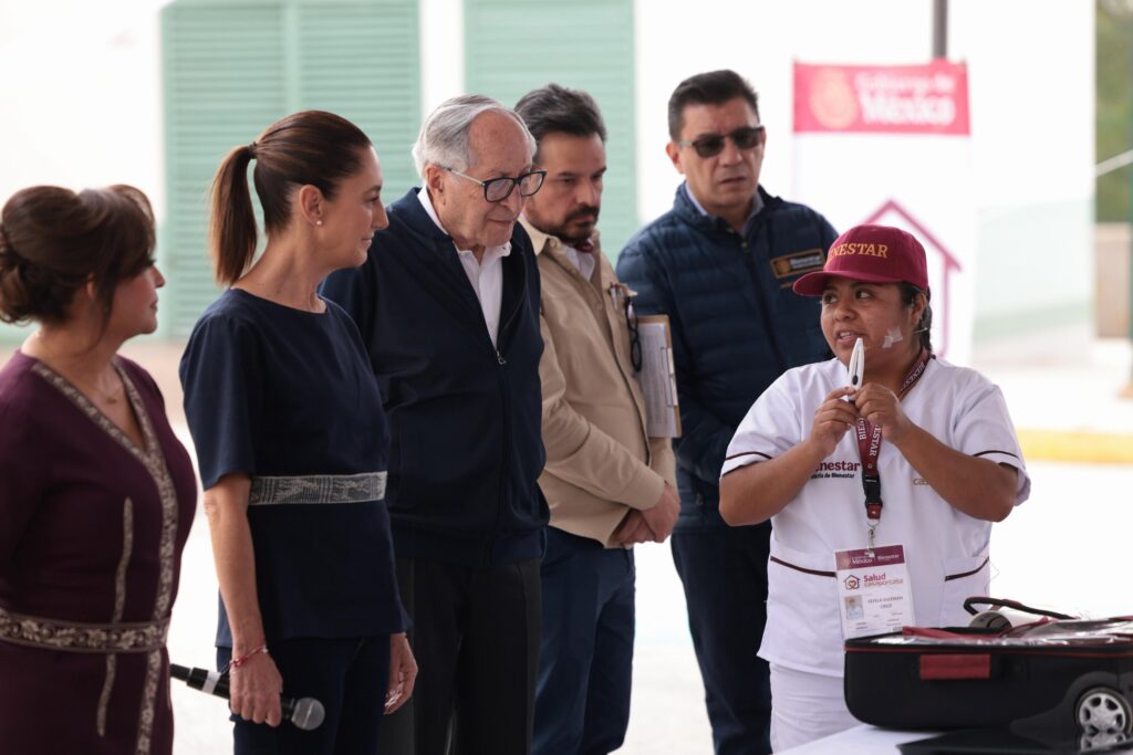 Acompañaron a la Presidenta de México, el secretario técnico de la Presidencia de la República y director general de Programas para el Bienestar, Carlos Torres Rosas; la subsecretaria de Egresos, Bertha Gómez Castro; y la facilitadora de la salud, Esthela Guzmán Cruz, quien realizó una breve explicación de los insumos médicos que contiene el maletín que se otorgó a las enfermeras, enfermeros, médicas y médicos del programa.