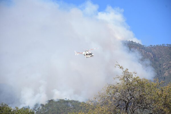 Para atender esta incendio forestal hubo coordinación con el Gobierno de Tlaxcala y se les proporcionó un helibalde con el que se realizaron 37 descargas para apagar el fuego en su territorio.