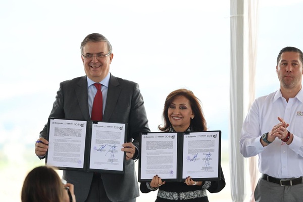 El titular de la Secretaría de Economía (SE), Marcelo Ebrard, felicitó a la mandataria estatal por lograr que la entidad sea primer lugar nacional en avance de construcción de los nuevos Polos de Desarrollo, y que incluso haya comprometido el 80 por ciento de la inversión en este clúster industrial.