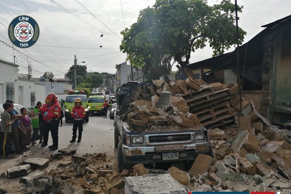 En zona 13 capitalina se reportó el colapso de un paredón que cayó sobre un vehículo en el área.