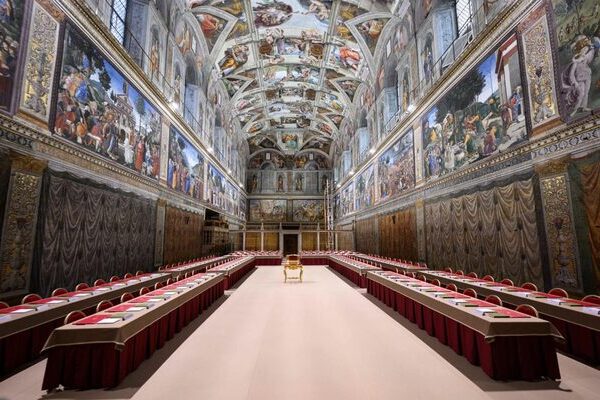 Antes de que los electores comiencen a escribir, el Secretario del Colegio Cardenalicio, el Maestro de las Celebraciones Litúrgicas Pontificias y los Maestros de Ceremonias deben abandonar la Capilla Sixtina, después el último Cardenal Diácono cierra la puerta, abriéndola y cerrándola tantas veces como sea necesario, como cuando los infirmarii salen a recoger los votos de los enfermos y regresan a la Capilla.