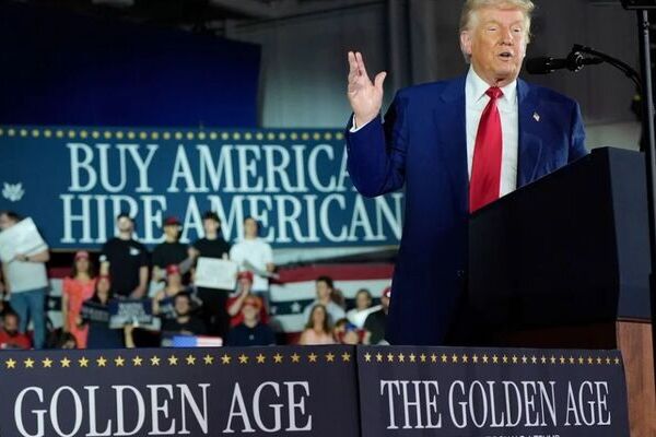 El líder criticó a los «lunáticos de la izquierda radical», se peleó brevemente con un alborotador y preguntó a la multitud por sus apodos favoritos para su predecesor, el presidente Joe Biden.