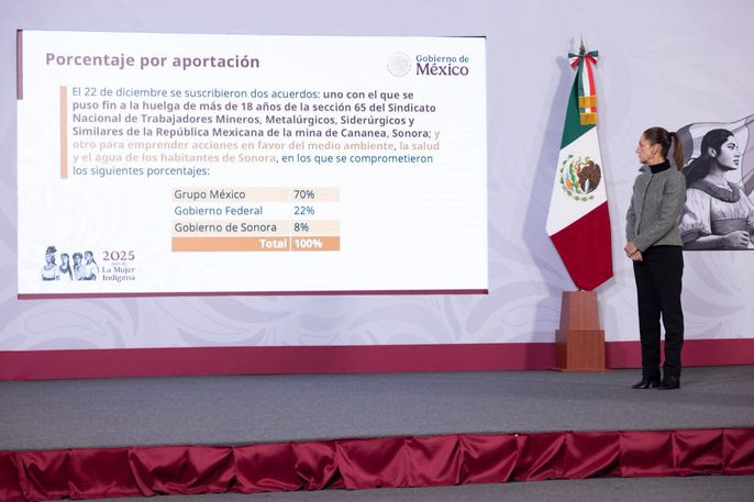 La Presidenta de México, Claudia Sheinbaum Pardo, anunció que en 2026 iniciará la construcción de las obras establecidas en el Plan de Justicia para Cananea, Sonora, las cuales contemplan un nuevo Hospital Regional en Ures, la instalación de potabilizadoras y centros de monitoreo de la calidad del agua, esto luego de concretarse un acuerdo con los trabajadores mineros de la región tras 18 años de huelga.