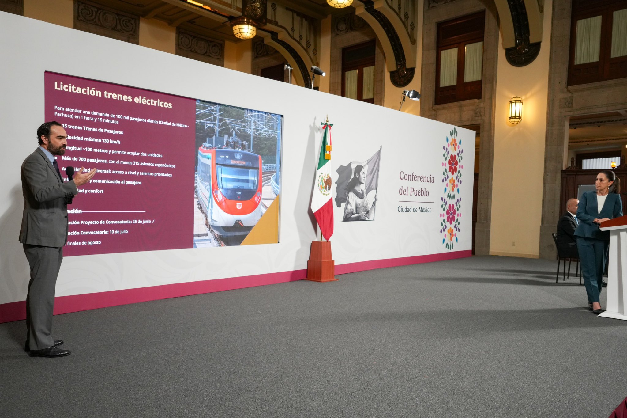 Precisó que, la convocatoria para los 15 trenes para el México–Pachuca, que se publica mañana 10 de julio, es para trenes de 100 metros de más de 700 pasajeros y los cuales viajarán a una velocidad máxima de 130 km/h.