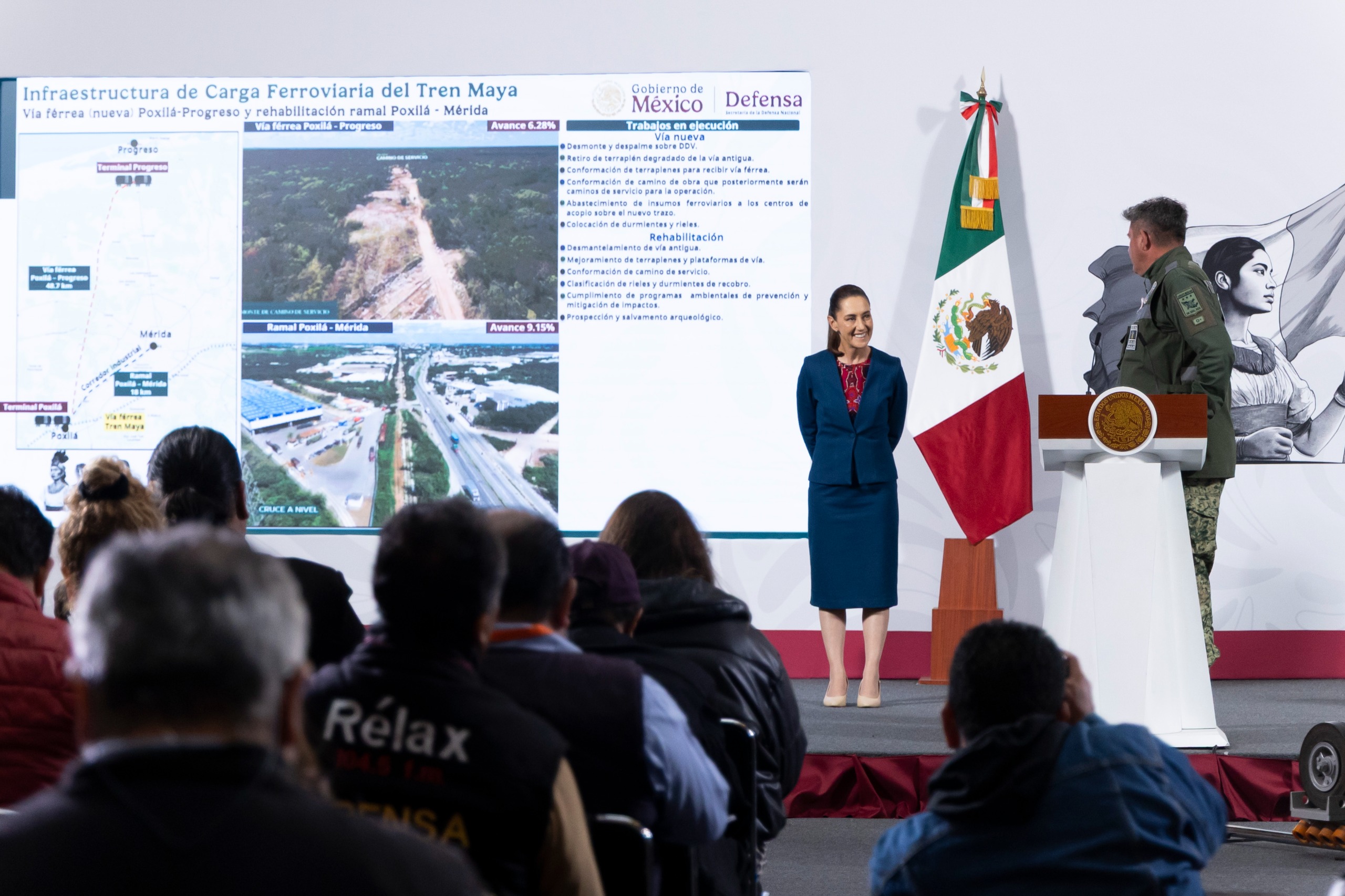 “Agradecer mucho a toda la población que ha ayudado muchísimo al avance que se tiene de los trenes: ejidos, personas, comunidades, municipios. No hemos tenido realmente ningún problema y además como se menciona aquí y es importante que se conozca, no hay intermediarios en la liberación del derecho de vía, si se va a adquirir un pedazo de tierra para que pueda pasar el tren se habla directamente con el municipio, con el ejido, se hacen asambleas, se explica el proyecto y los pagos son de manera directa, sin ningún intermediario.”, destacó en la conferencia matutina.