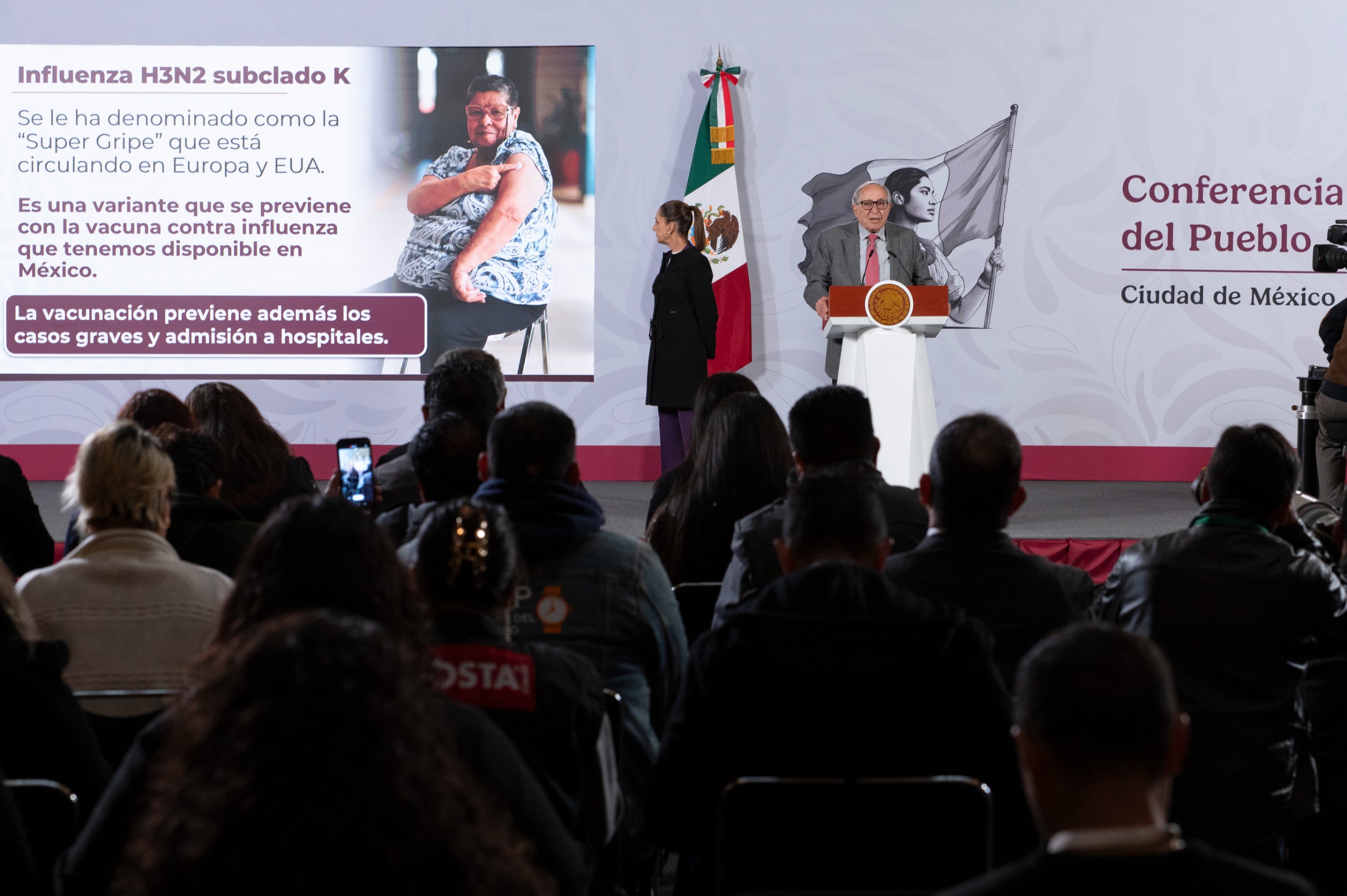 El secretario de Salud, David Kershenobich Stalnikowitz, informó que, en atención a la alerta emitida por la Organización Mundial de la Salud (OMS) respecto a la influenza H3N2 subclado K o también denominada como la “Super Gripe”, que circula en Europa y Estados Unidos, en México solo se ha registrado un caso en una paciente de 82 años que recibió tratamiento en el Instituto Nacional de Enfermedades Respiratorias (INER). Detalló que la influenza H3N2 subclado K se trata de una variante que responde bien al tratamiento habitual y se previene con la vacuna Mexinvac que se produce en el país y de la que hay una disponibilidad suficiente para cubrir a la población en riesgo.
