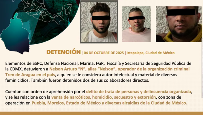 También detalló que Nelson y dos de sus principales colaboradores —Lucas Alberto ‘N’ y Marcos Gabriel ‘N‘— ya contaban con una orden de aprehensión obtenida por la Fiscalía de Justicia de la Ciudad de México por el delito de trata de personas y delincuencia organizada.