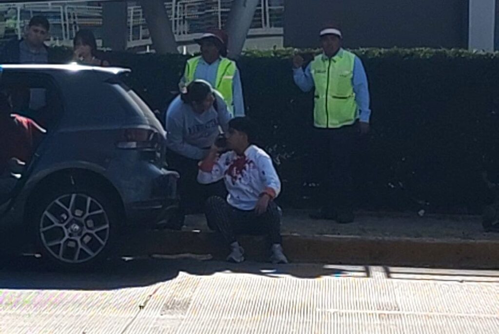 El joven conductor del vehículo siniestrado fue fotografiado desde el estacionamiento de Vía San Ángel, sentado en la banqueta ensangrentado y hablando por teléfono. En las imágenes se puede ver que portaba el uniforme que llevan los alumnos de gastronomía del IEU.