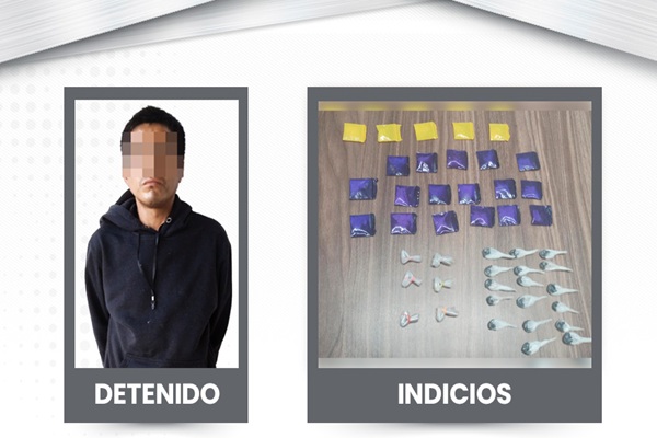 Personal de la Policía de la Ciudad, detuvo a una persona en posesión de diversos envoltorios de posibles sustancias ilícitas con características similares al cristal y la heroína.