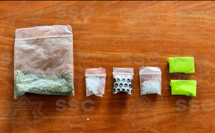 Al detener la marcha, los elementos de la SSC solicitaron realizarle una revisión preventiva a quien se identificó como Alexis N., de 18 años de edad. Durante la inspección, se encontraron entre sus pertenencias tres bolsas plásticas transparentes, las cuales contenían una sustancia granulada con las características propias de la droga conocida como “cristal”; dos envoltorios de color verde fluorescente, que en su interior contenían una sustancia granulada, al parecer cristal; y una bolsa transparente, la cual en su interior contenía hierba seca con características propias de la marihuana, de la cual no pudo acreditar su legal posesión.