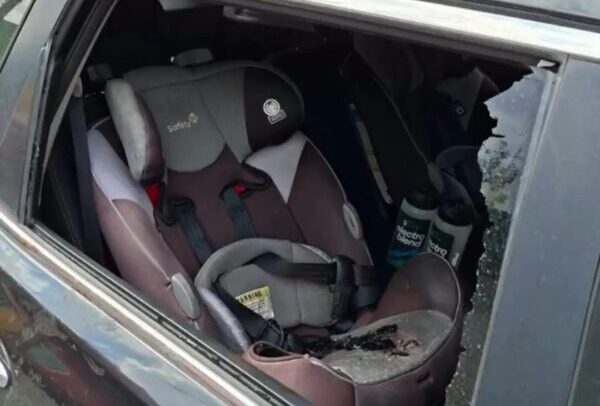 El tío agregó en la publicación una fotografía de la camioneta, donde se ve rotó el cristal trasero derecho, y se observa una silla de seguridad para menores de edad.