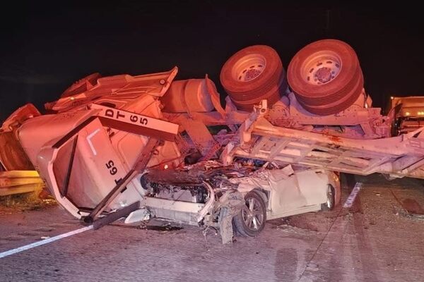 Debido a la volcadura de un tráiler que aplastó un automóvil, se registró caos vial desde la madrugada por el cierre de la autopista Arco Norte, a la altura del km 225+000 con dirección a Atlacomulco, desde las tres de la mañana de este martes 13 de enero.