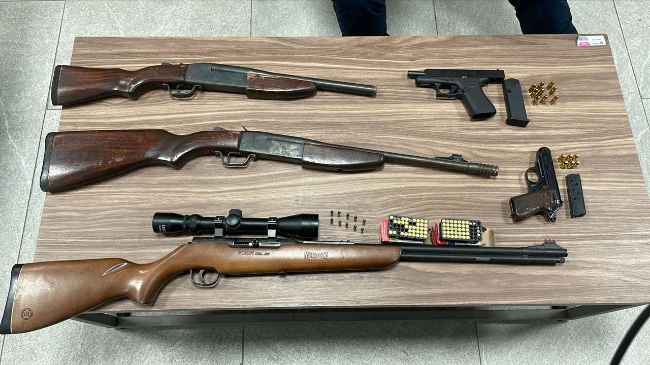 Las personas detenidas fueron cuatro hombres y dos mujeres, una de ellas menor de edad, quienes tenían en su poder tres armas largas y dos cortas, dos cargadores, así como noventa y cuatro cartuchos útiles de diversos calibres.