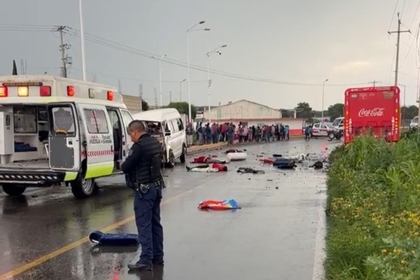 Cuatro personas murieron y tres resultaron lesionadas por un choque entre un camión de la empresa Coca-Cola y una unidad que transportaba personal de la empresa Driscoll’s, sobre la carretera San Nicolás Buenos Aires-Tlachichuca, en Puebla.