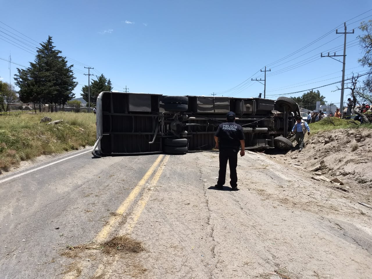 La Policía Federal informó que el accidente ocurrió a las 13:20 horas en el tramo con dirección a Amozoc, donde el chofer volcó el camión unitario pesado tipo Ómnibus, Mercedes Benz de color blanco, y placas 940HS2 del SPF, de Autotransportes Puebla Amozoc-Tepetzala, con número económico 137.