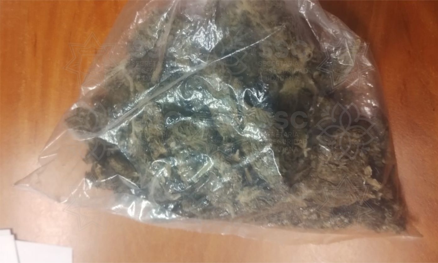 Al efectuar la inspección preventiva, los oficiales localizaron entre las pertenencias de los asegurados un arma de fuego corta, un cargador, tres cartuchos útiles, dinero en efectivo y una bolsa transparente con hierba seca con características similares a la marihuana.