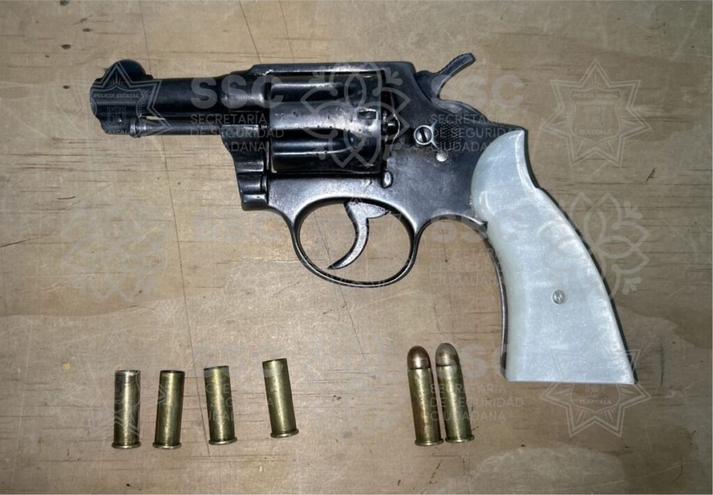 Al ser ubicados, los elementos de seguridad les marcaron el alto y procedieron a realizarles una inspección preventiva, localizando entre sus pertenencias un arma de fuego tipo revólver, dos cartuchos útiles y cuatro cartuchos percutidos.