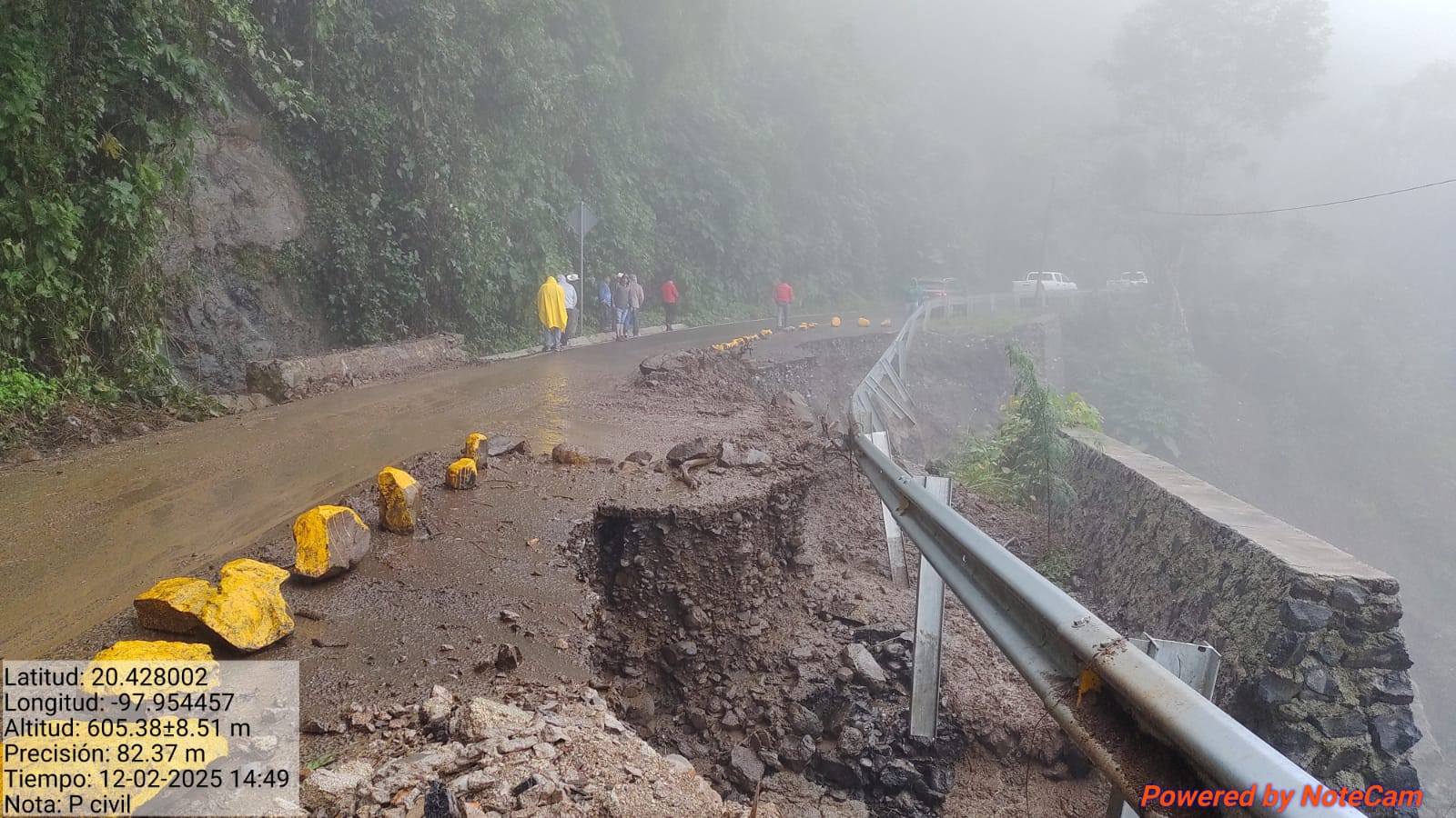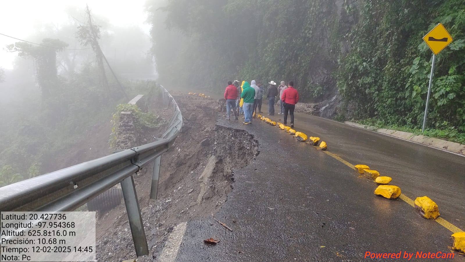 Se precisó que la Dirección de Protección Civil reportó que fue el día 02 de diciembre de 2025 cuando se registró una afectación severa en el tramo carretero KM 3+100 hacia Papaloctipan (Lat. 20.428002; Long. -97.954457).