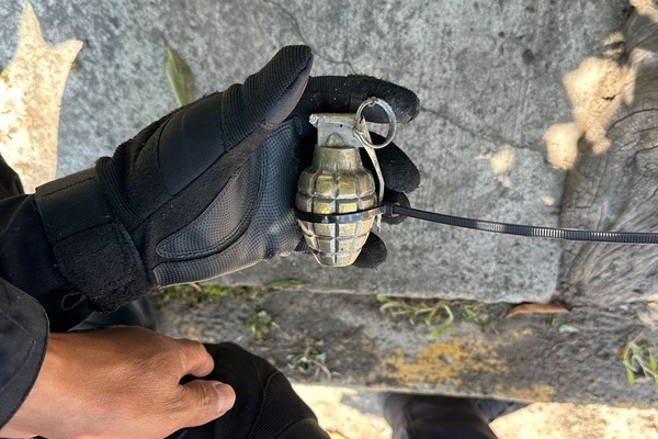De acuerdo con el reporte policial se trata de una granada fragmento MK2, de color cobrizo la cual quedó correctamente asegurada por las autoridades.