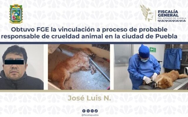 La Fiscalía General del Estado (FGE) de Puebla obtuvo la vinculación a proceso con prisión preventiva de José Luis N., al sustentar con datos de prueba su probable responsabilidad en delitos contra los animales mediante actos de crueldad.