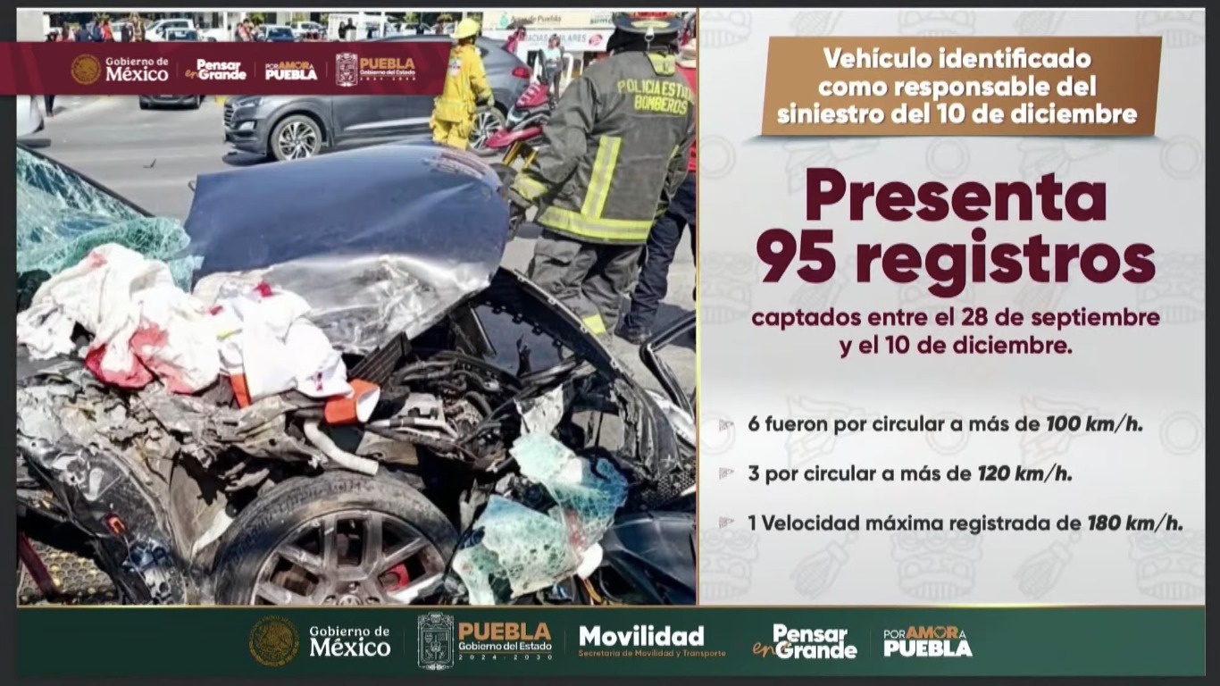 «De manera dolosa, vehículos con placas de otros estados fueron captados, minutos antes de los siniestros rebasando los 140 kilómetros por hora, velocidades que no solo violan la ley, sino que convierten a un automóvil en un arma mortal. En el caso del vehículo responsable del siniestro del 10 de diciembre, es especialmente grave: tenía 95 registros por exceso de velocidad en poco más de dos meses. Seis arriba de 100 kilómetros; y tres arriba de 120 kilómetros, y una velocidad simplemente inaceptable, 180 kilómetros por hora.
