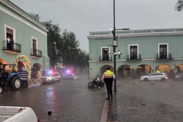 Los primeros reportes indican desborde de agua en calles de al menos tres municipios; comenzando por Tlaxcala capital, así como Texoloc y Chiautempan.