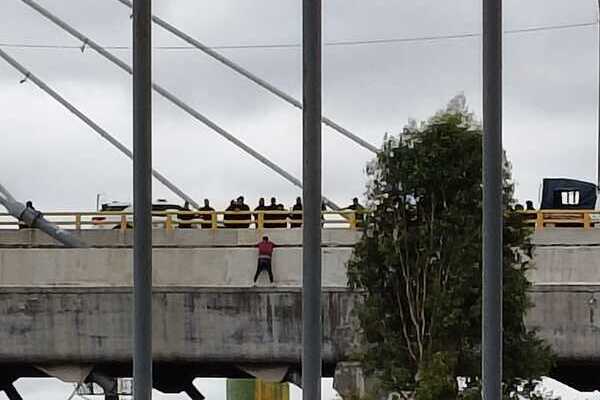 La presencia del hombre en la lateral de este puente alarmó a la ciudadanía y conductores de la zona, quienes reportaron rápidamente a las autoridades sobre el intento de suicidio.