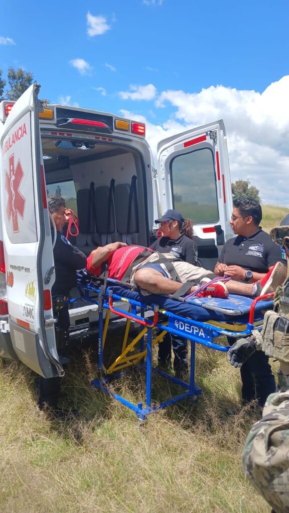 Cuerpos de rescate llegaron hasta el lugar para sacar al hombre de la barranca quien sufrió fracturas de cadera y clavícula izquierda por lo que fue trasladado por paramédicos al hospital de Traumatología y Ortopedia del sector salud para brindarle atención médica.