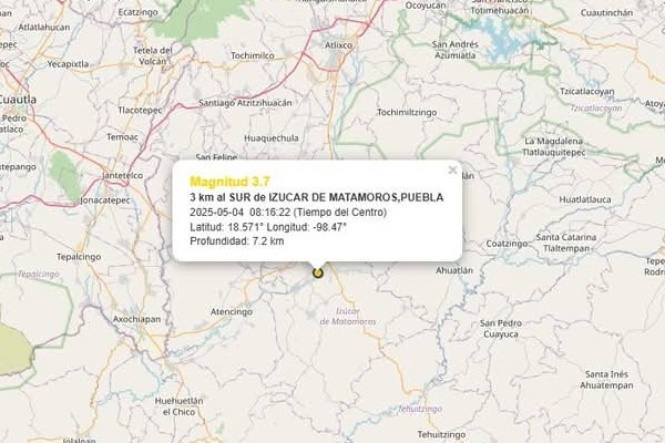 Tras el reporte de sismo ocurrido este día, de magnitud 3.7 localizado a 03 km al sur de Izúcar de Matamoros, la Coordinación General de Protección Civil y Gestión del Riesgo de Desastres informa que en dicho municipio fue percibido de manera muy ligera, sin daños a la población.