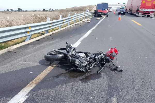 El accidente ocurrió a la altura del kilómetro 9.5 por donde el elemento circulaba a bordo de su motocicleta cuando fue impactado tras un choque frontal entre dos camionetas.