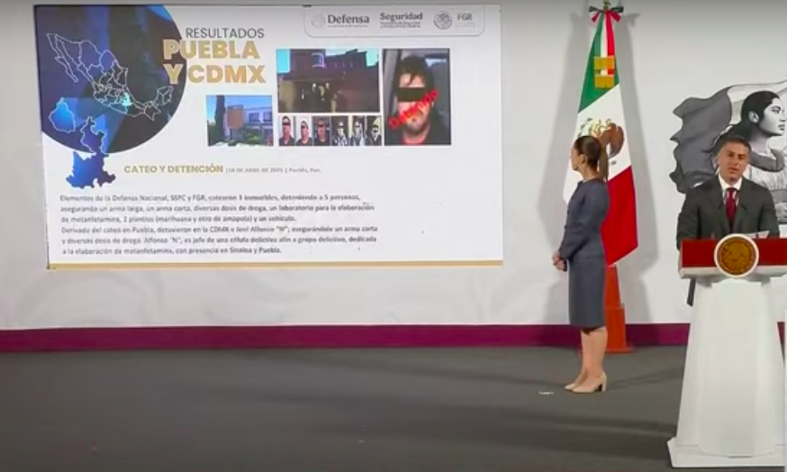 El titular de la Secretaría de Seguridad y Protección Ciudadana (SSPC), Omar García Harfuch detalló los operativos que se han realizado contra el Cártel del Mayo Zambada en el estado de Puebla, durante el mes de abril.