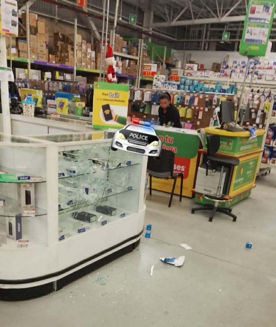 De acuerdo con los reportes policíacos, los sujetos ingresaron a la tienda con marros, rompieron las vitrinas de los teléfonos celulares, y además hicieron de detonaciones de arma de fuego para amedrentar a los clientes y y al personal.