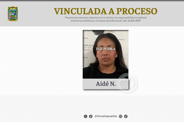La Fiscalía General del Estado de Puebla obtuvo la vinculación a proceso de Aidé N. probable responsable del delito de lesiones calificadas cometido en agravio de dos mujeres.