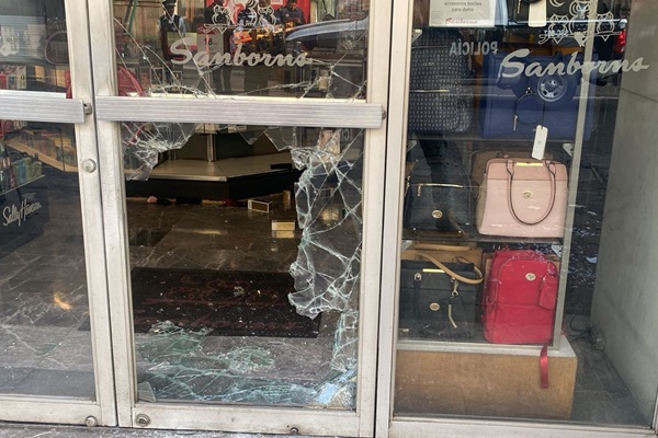 Con un cristalazo fue asaltada la sucursal de la tiendas Sanborns ubicada en la 2 oriente, a espaldas de Palacio Municipal, en el Centro Histórico de la ciudad de Puebla.