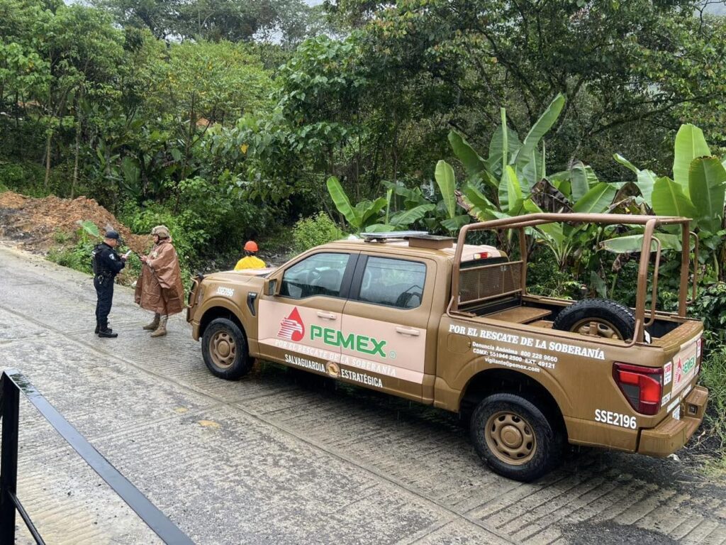 En la zona del derrame de petróleo hay personal de Pemex, Policía Estatal y Protección Civil Municipal, quienes realizan labores conjuntas de contención, recuperación del combustible e instalación de barreras.