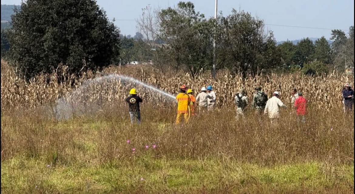De acuerdo con la información disponible, el hecho sucedió en la localidad de Beristain, en medio de un campo de cultivo donde se reportó y atendió una fuga de gas L.P. qué alertó a vecinos.