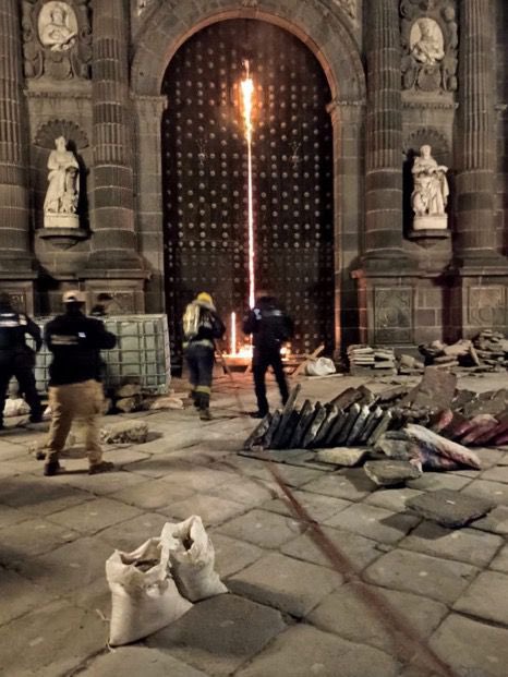 De acuerdo con los primeros reportes dicho incendio fue provocado por individuo que le prendió fuego a portón norte del edificio religioso ubicada sobre la calle 3 oriente.