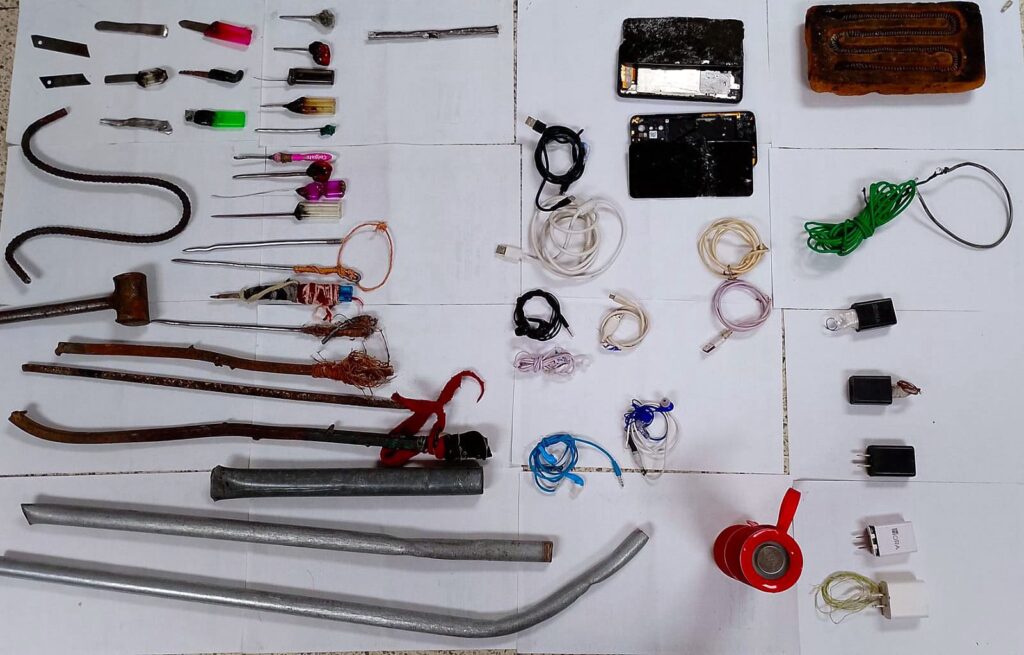 En tanto, en el penal de Puebla, las acciones fueron desarrolladas por personal de la Subsecretaría de Centros Penitenciarios, quienes localizaron 21 objetos punzocortantes, cargadores, audífonos, cables USB, tubos de metal, trozos de varilla y herramientas hechizas.