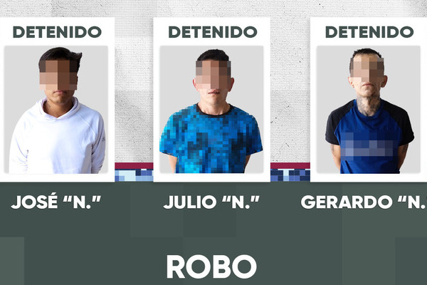 Durante el despliegue territorial, sobre calles de la unidad habitacional San Ramón, elementos municipales detuvieron a los ladrones, identificados como: Gerardo “N”, de 39 años de edad; Julio “N”, de 36 años de edad; y a José “N”, de 23 años de edad.