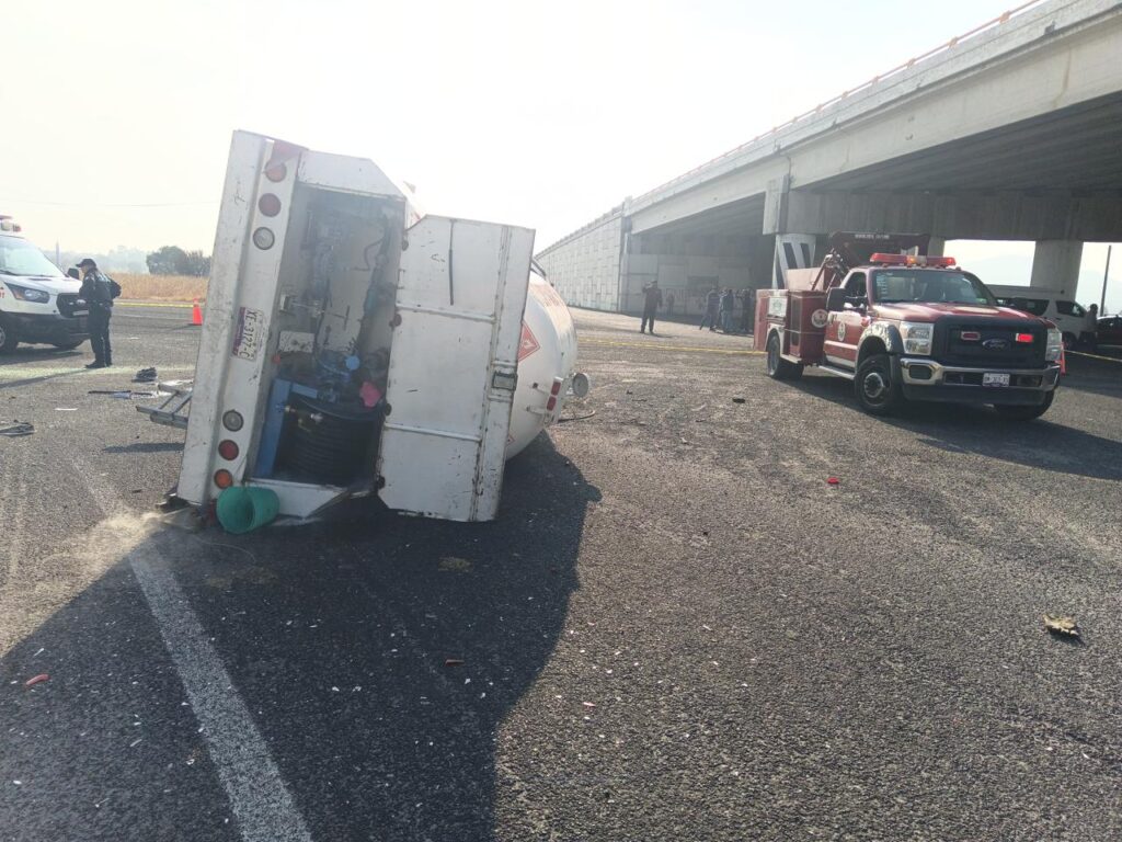 Una persona muerta y cuatro lesionadas dejó el choque y volcadura de una pipa que trasladaba Gas LP y de una unidad del transporte público sobre la carretera Xaloztoc–Terrenate, a la altura del puente de Velasco en el municipio de Xaloztoc, en el estado de Tlaxcala.