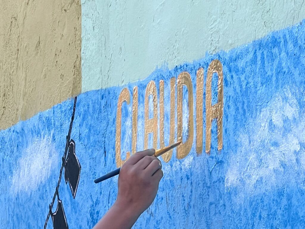 En el mural, por más de dos horas, se restauró toda su fisonomía completa, así como parte de los detalles relacionados con su personalidad, entre ellos, su pasión por la música y su gusto por los gatos.