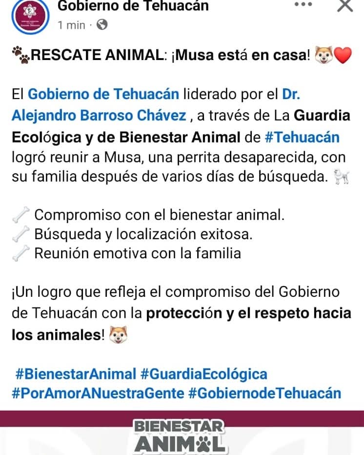 La asociación civil TAC, una protección al entorno, informó que está siendo objeto de ataques digitales por parte de cuentas falsas o automatizadas (bots) después de que responsabilizó al área de Bienestar Animal del Ayuntamiento de Tehuacán por la desaparición de la perrita «‘Musa», una perrita de avanzada edad con problemas de salud.