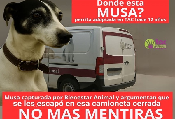 TAC comunicó que «Musa» sigue desaparecida, sin que las autoridades competentes hayan activado ningún protocolo oficial de búsqueda y dijo que tampoco se aplicaron los protocolos de ley en materia de aseguramiento y protección animal.