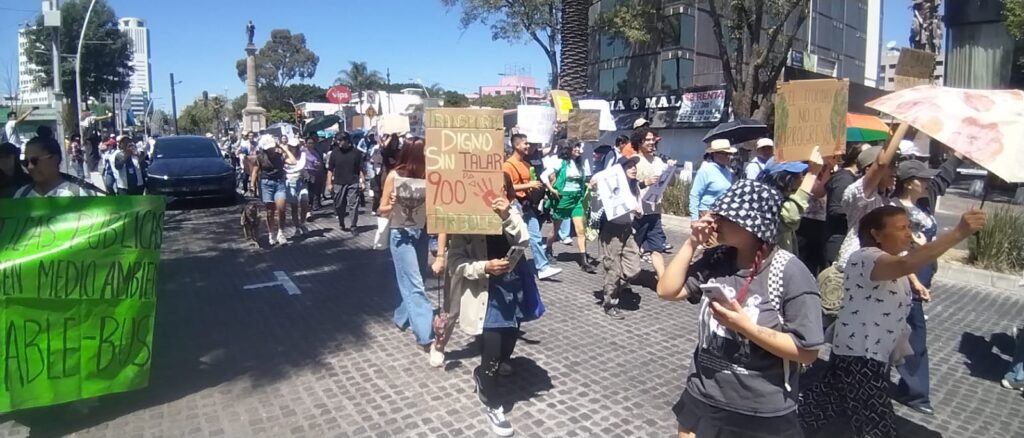 Alrededor de 400 personas, entre ambientalistas, estudiantes y habitantes de distintas colonias de la ciudad de Puebla, marcharon de la 25 Sur, en la Avenida Juárez, al Zócalo para exigir, principalmente, la reubicación de las estaciones del Cablebús.