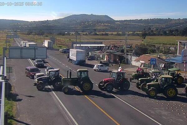 Campesinos tlaxcaltecas bloquean la carretera federal México-Veracruz, en el tramo de Sanctórum – Nanacamilpa, en el kilómetro 72+000, para exigir apoyos al Gobierno de México.