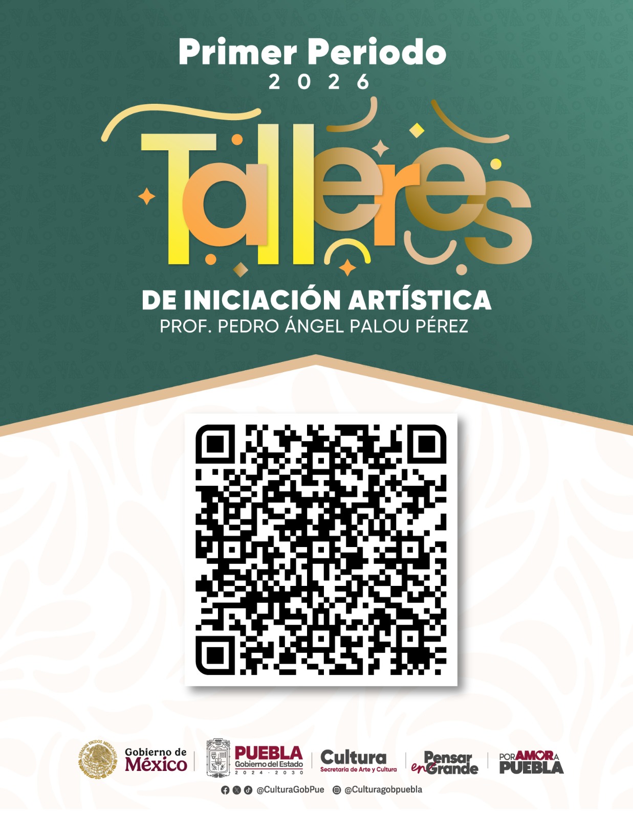 Con el objetivo de fomentar el desarrollo creativo en la sociedad poblana, la administración que encabeza Alejandro Armenta Mier anunció la apertura del Primer Periodo del 2026 de los Talleres de Iniciación Artística “Prof. Pedro Ángel Palou Pérez”, cuya información está disponible en la página web de la Secretaría de Arte y Cultura.