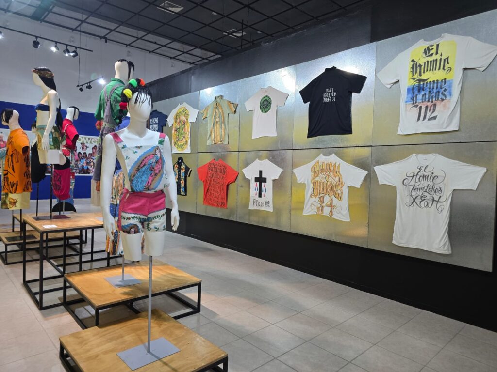 «Cholombianos» reúne más de 2 mil 600 piezas, entre fotografías, prendas intervenidas, gorras bordadas, peinados escultóricos, escapularios, afiches, bitácoras personales, objetos de culto y música de cumbia rebajada, uno de los elementos sonoros más representativos de esta identidad.