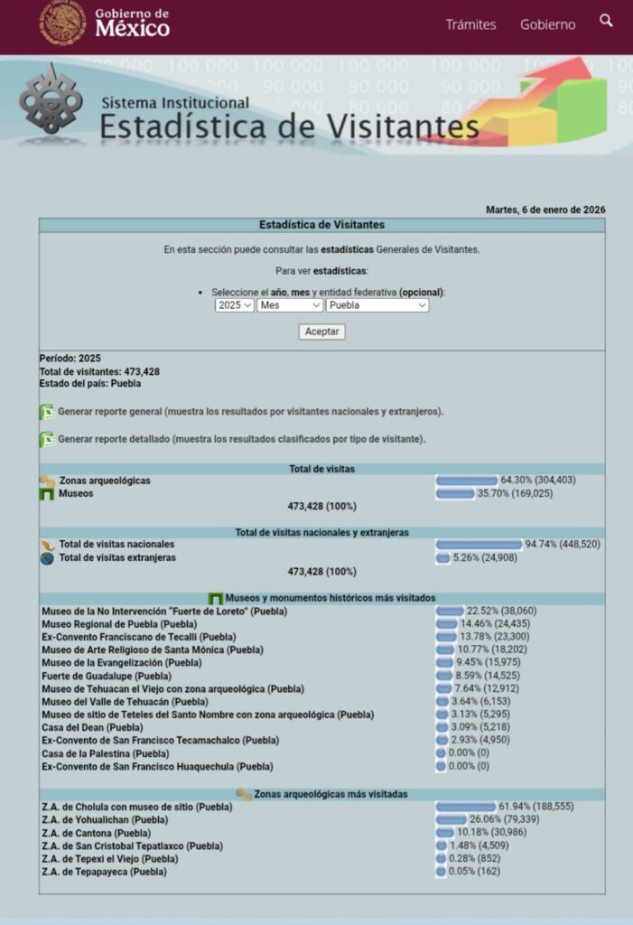 Así se puede constatar en los datos publicados en el sitio institucional del gobierno federal y del Instituto Nacional de Antropología e Historia (INAH).