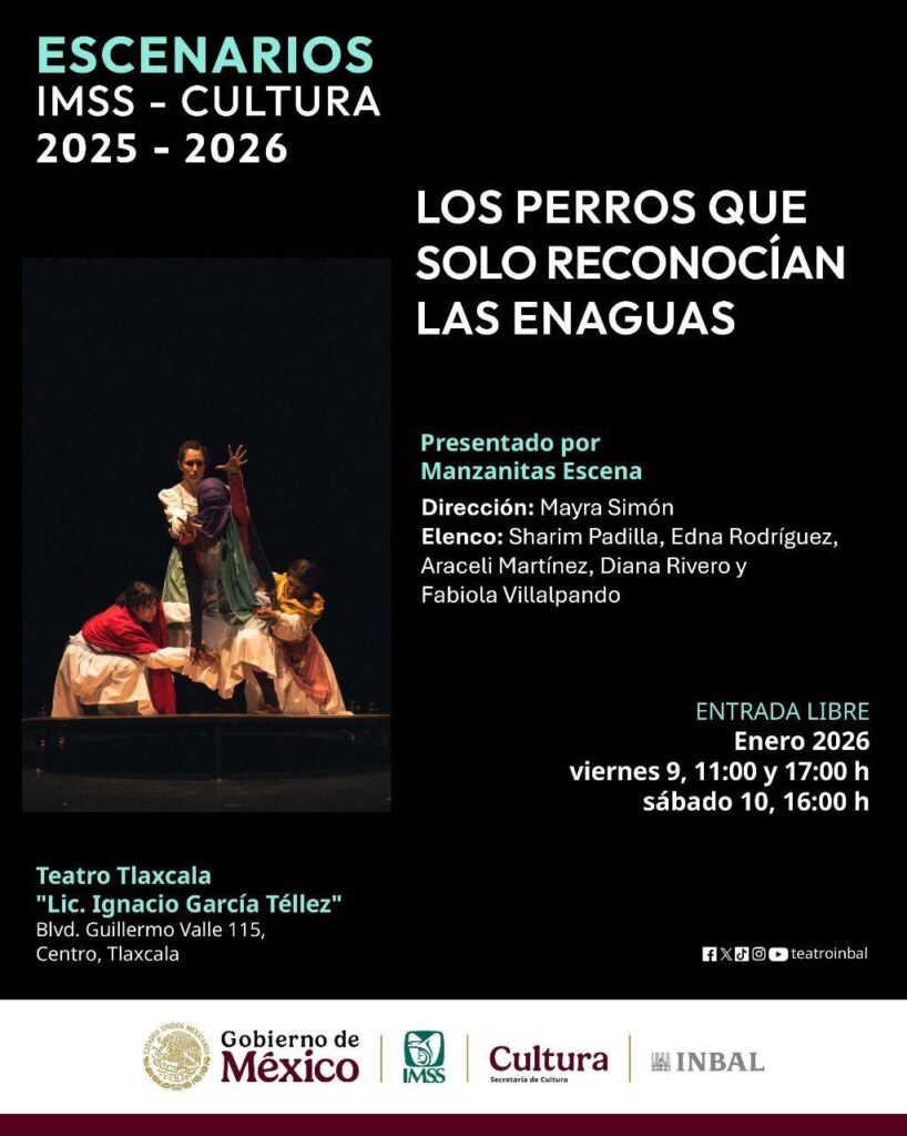 La Secretaría de Cultura del Estado de Tlaxcala invita al público a la puesta en escena “Los perros que sólo reconocían las enaguas”, una obra de teatro documental y biodrama que aborda, desde una mirada íntima y poética, la memoria y la resistencia de mujeres campesinas en contextos marcados por la desigualdad y el machismo.