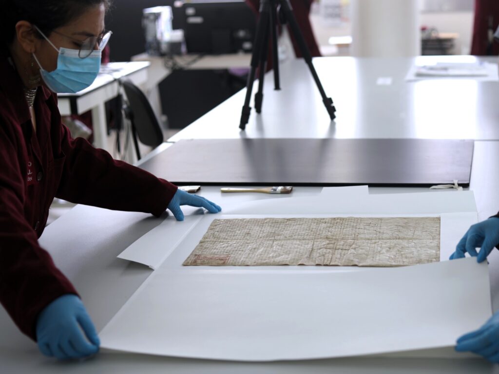 Después de la entrega realizada en las oficinas que ocupa la SRE, a través de su Consultoría Jurídica, el AGN trasladó el documento a sus instalaciones, en donde recibió a cronistas de Huejotzingo que fueron parte del proceso de repatriación para presenciar la apertura del embalaje del documento.